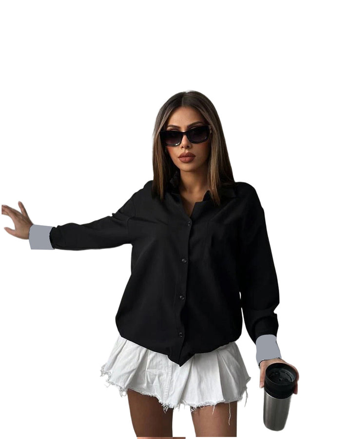 Solid Color Embroidered Letter Shirt
