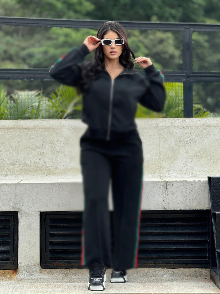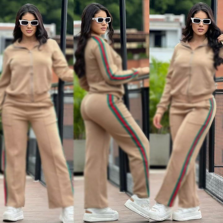 Embossed Long Sleeve Zip-Up Tracksuit