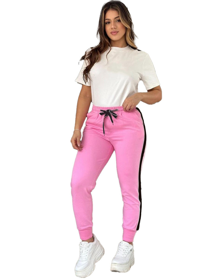 Crown Neck Top + Pink Cuffed Trousers