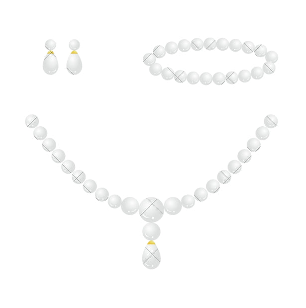 Products include: a necklace, a bracelet, and a pair of earrings