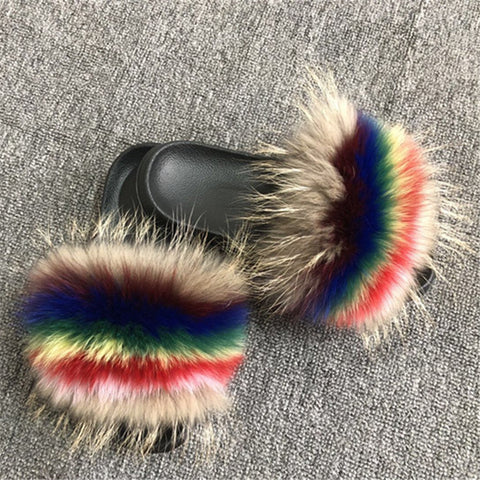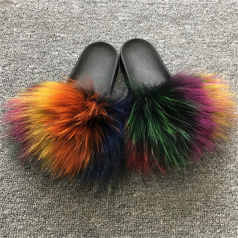 Fur material: plush slides /raccoon fur sandals