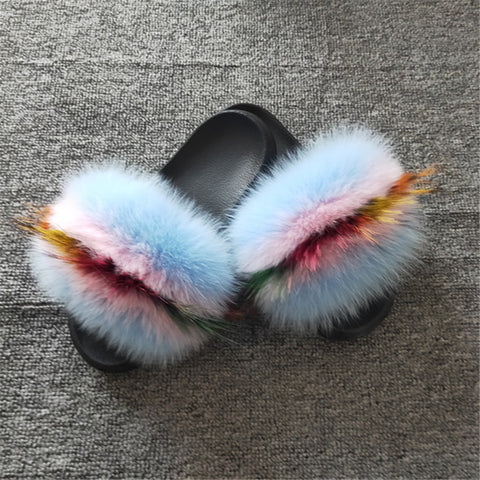 - Fur material: plush slides /raccoon fur sandals