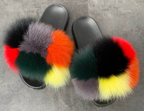 - Fur material: plush slides /raccoon fur sandals